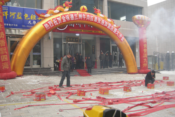 2012年12月2日金味德蘭州牛肉拉面張掖加盟店隆重開業,鞭炮齊鳴,鑼鼓喧天,現場人潮涌動,氣氛十分火爆。金味德蘭州牛肉拉面也迎來了第50家加盟店的開業,踏上一個新的事業起點,預示著金味德蘭州牛肉拉面加盟連鎖事業向嶄新的舞臺拉開了序幕。