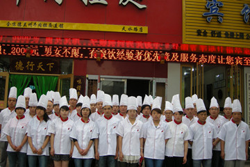 活動結束后烹飪學校所有學員與節目主持人合影留念