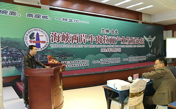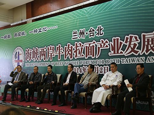 為推動蘭州牛肉拉面行業及產業發展,11月2日上午在西北賓館召開了蘭州•臺北海峽兩岸牛肉拉面產業發展論壇,此次論壇,由甘肅省蘭州牛肉拉面產業聯合會和臺北市牛肉面交流發展協會聯合主辦,甘肅省蘭州拉面產業聯合會特邀了臺北市牛肉面交流發展協會理事長鄭正中先生及一行三人參會。蘭州市政府主管部門領導,蘭州牛肉拉面相關產業學者、專家、海峽兩岸牛肉拉面成功經營者交流發言,當天參會代表100余人參加了論壇交流。據悉,臺灣與甘肅兩地聯合舉辦牛肉面產業論壇,交流經驗、碰撞思想,尚屬首次。