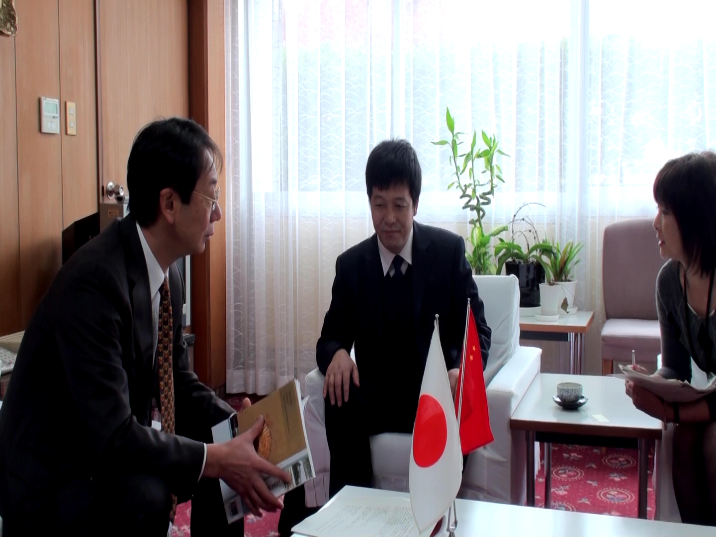 金味餐飲有限公司總經理梁順儉先生與日本秋田市長穗積志對蘭州拉面文化進行交流