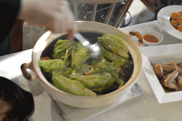 前幾天跟朋友去陶陶居,特地點了大眾點評上熱推的啫啫生菜煲:燒紅的砂鍋放在鐵板上,上臺后放入生菜,不停地攪拌,利用砂鍋的余溫將生菜煲熟,再配上蝦干、蝦醬或蒜蓉調味,既脆鮮又爽口入味。