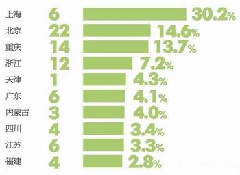 上海、北京、重慶位居三甲,這三個城市的飲食特色較為多樣化,且注重餐飲行業的發展。