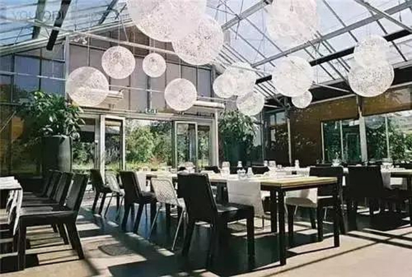 位于阿姆斯特丹郊外的restaurant de kas餐廳,是一家貨真價實的溫室餐廳。de kas在荷蘭語中的意思是溫室,種滿健康的綠色植物,充滿溫暖陽光的花園。讓客人置身于自然和陽光之間,舒展心靈,享受至新鮮、至美味的食物。這也是餐廳創始人gert jan hageman最想賦予這家餐廳的意義。這溫室興建于1927年,當年主要是用來栽種城市造景所需的植物,后來卻閑置了,荒廢了。直到gert在2001年將溫室買下后,聘請piet boom對其重建,使它成為了阿姆斯特丹郊區最火的溫室餐廳。