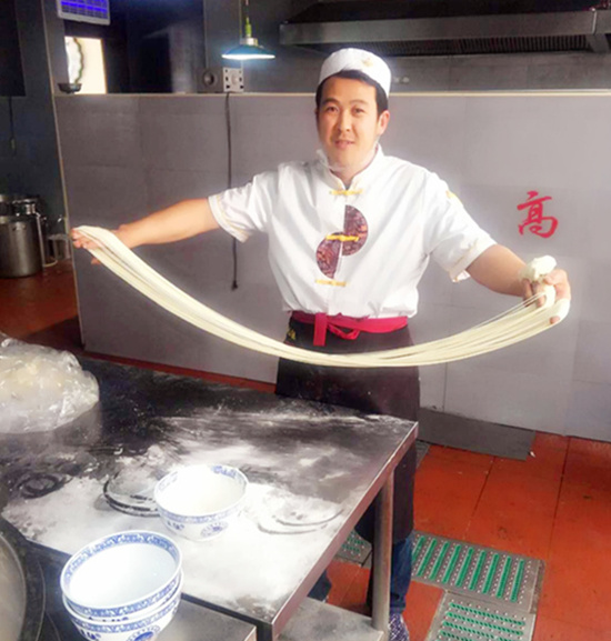 蘭州牛肉面的面條,全程純手工,所謂“三遍水,三遍灰、九九八十一遍揉”,一疙瘩普通的面劑子在拉面師傅手中極富變化,大寬、韭葉、毛細、二細、三細、蕎麥棱......不同形狀的拉面合著不同的脾性和年齡,大寬粗狂生猛、二細穩重有力,韭葉纖薄秀麗,毛細溫柔細膩。所謂“拉面好似一盤線,下到鍋里悠悠轉,撈到面里菊花瓣”。孔子云:“食不厭精,膾不厭細”,從湯到面,蘭州牛肉面把中華面食的儀式感和豐厚蘊藉的含義表達到了極致。至于碗里綿綿不絕的一根面條最長能有多長,據說能達到366米,真所謂碗大乾坤,面長亙古。