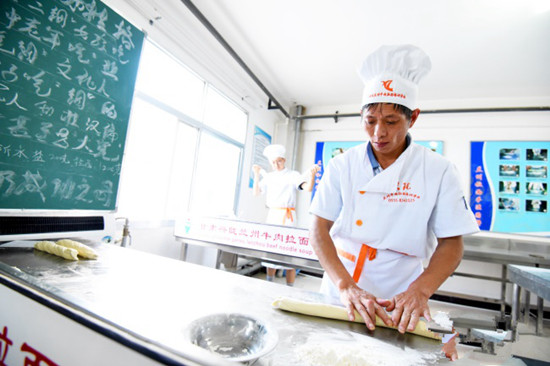 興隴蘭州牛肉拉面國際商學院,學員拉面手法地道嫻熟。