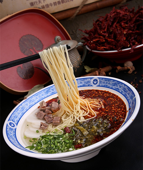 蘭州牛肉面,又稱蘭州清湯牛肉面,是“中國十大面條”之一,是甘肅省蘭州地區的風味小吃。它以“湯鏡者清,肉爛者香,面細者精”的獨特風味和“一清二白三紅四綠五黃”,一清(湯清)、二白(蘿卜白)、三紅(辣椒油紅)、四綠(香菜、蒜苗綠)、五黃(面條黃亮),贏得了國內乃至全世界顧客的好評。并被中國烹飪協會評為三大中式快餐之一,得到美譽“中華第一面”。