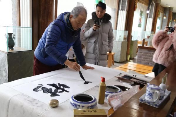 在活動現場,書畫家與公司員工歡聚一堂、共迎新春。各位書畫家飽蘸激情、揮毫潑墨,現場進行創作,畫筆濃墨重彩地描繪著自己的靈感,毛筆揮毫自如精心書寫著對生活的熱愛和感悟,一幅幅風格迥異的書畫作品呈現在眾人面前,寬敞明亮的工坊里翰墨飄香,熱鬧非凡。