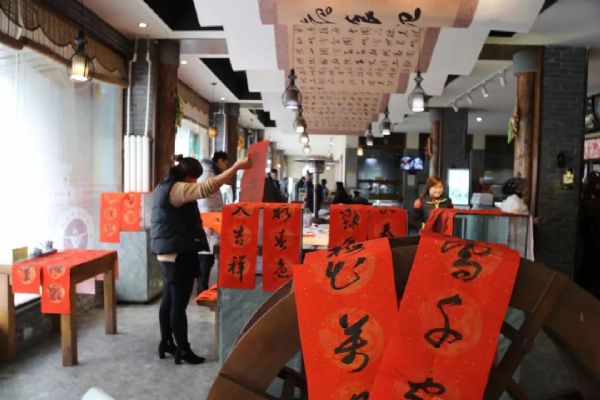 2019年1月20日上午,在甘肅金味德集團南山路體驗工坊,中國傳統文化研究院書畫名家與金味德集團舉辦了新春聯誼活動。在活動中,中國傳統文化之飲食文化與書畫文化名家就傳統文化繼承、弘揚和發展與集團董事長梁順儉進行了深入交流。