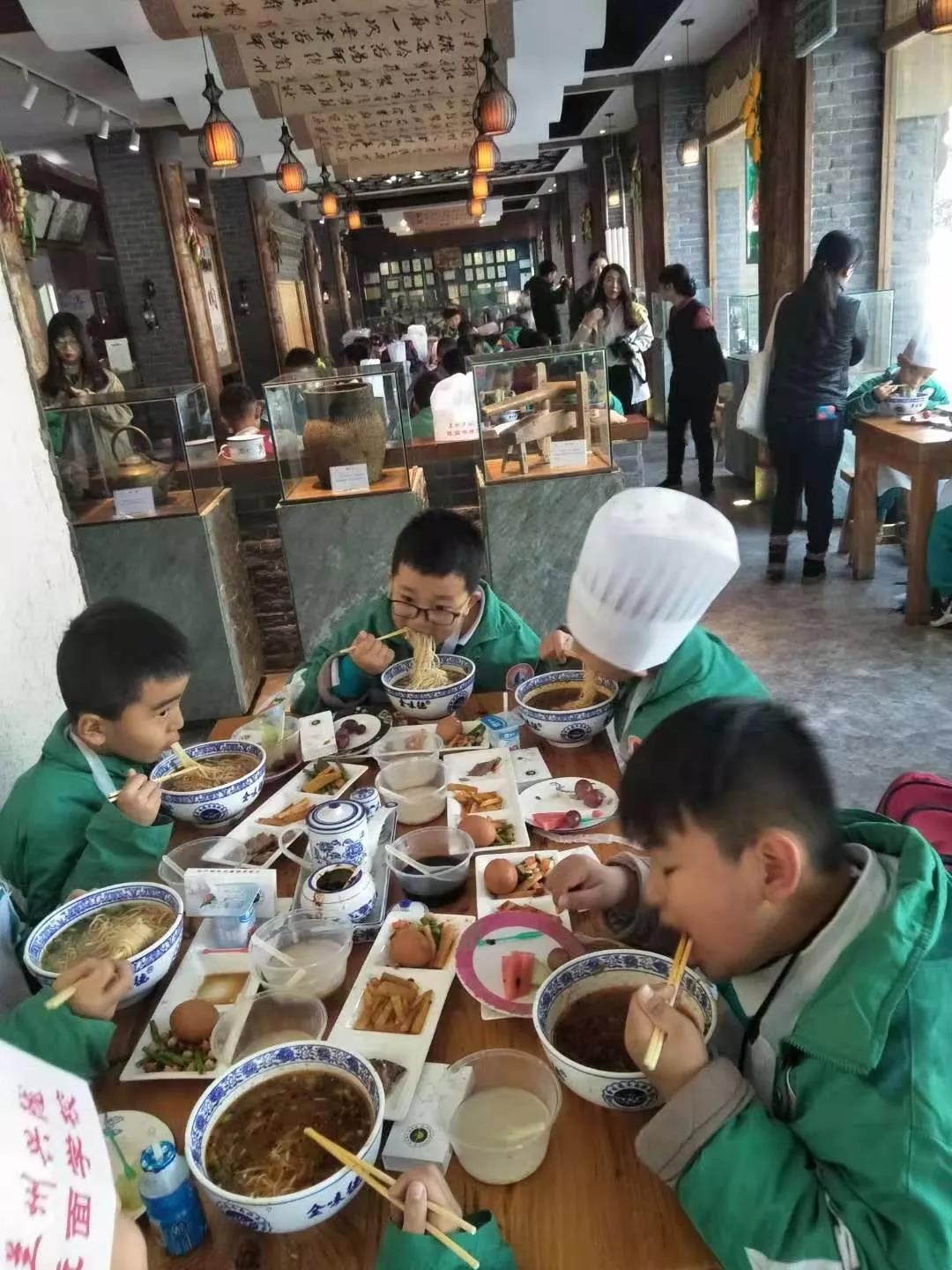 在興隴牛肉面培訓老師的帶領下,孩子們親眼見證并親自體驗了“一碗面”的制作過程——和面、揉面、出面、拉面、撈面等一系列過程。每一個過程、每一個環節都有很多的叔叔在認真地制作,這才有了一碗熱氣騰騰、美味可口的牛肉面被端上餐桌。當孩子們親眼看到了這些時,老師們給孩子們說道:“內一分鐘,廚內更多功,糧食大家也親自體驗了要經過多少道工序才能變成美味食物,所以我們都要節約糧食哦!”  后面用餐孩子們都把碗吃的干干凈凈的。