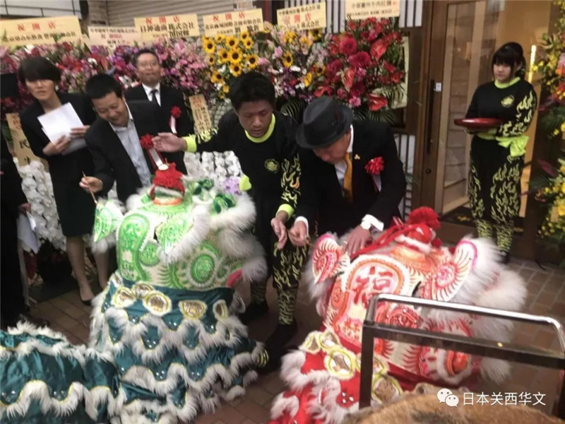 在致辭結束后,當天到場的嘉賓為神戶“中華蘭州牛肉拉面”店舉辦了隆重的剪彩儀式;甘肅省商務廳特派專員、蘭州牛肉拉面國際聯盟主席梁順儉也向中華蘭州拉面株式會社社長康主恩授予了“蘭州牛肉拉面”的認定牌匾。專程邀請前來表演的舞獅隊舉行了開業雄獅表演,康主恩社長專門進行了雄獅點睛儀式。