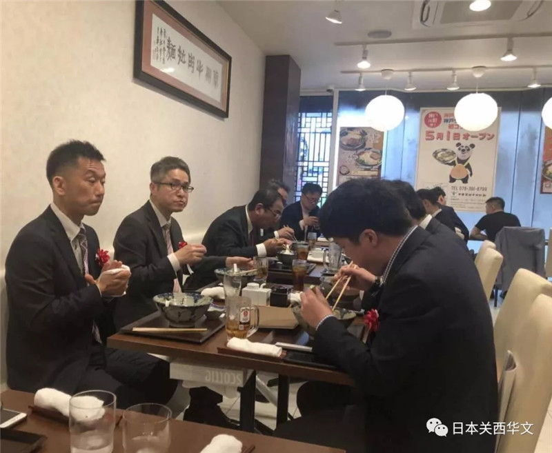 隨后,嘉賓們還合影留念,并一道品嘗了精心準備的蘭州牛肉拉面,大家吃過后都贊不絕口。而早已經等候多時、排成長隊的中日顧客隨后也依次進入店里,將位置坐得滿滿的。
