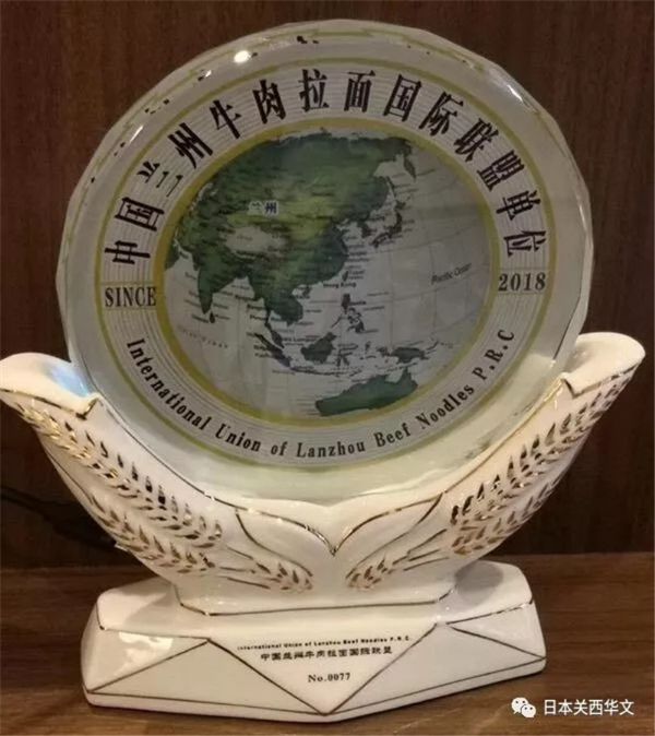 蘭州牛肉拉面國際聯盟主席梁順儉向康主恩社長授牌