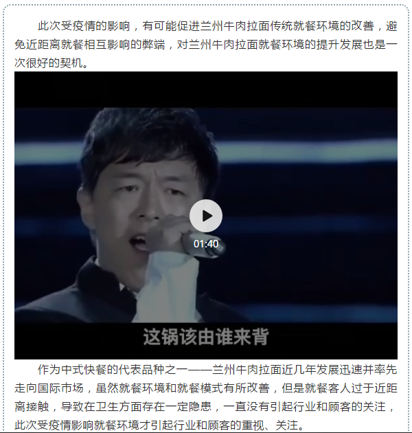 受疫情影響,蘭州拉面就餐環境或迎 新的變革!