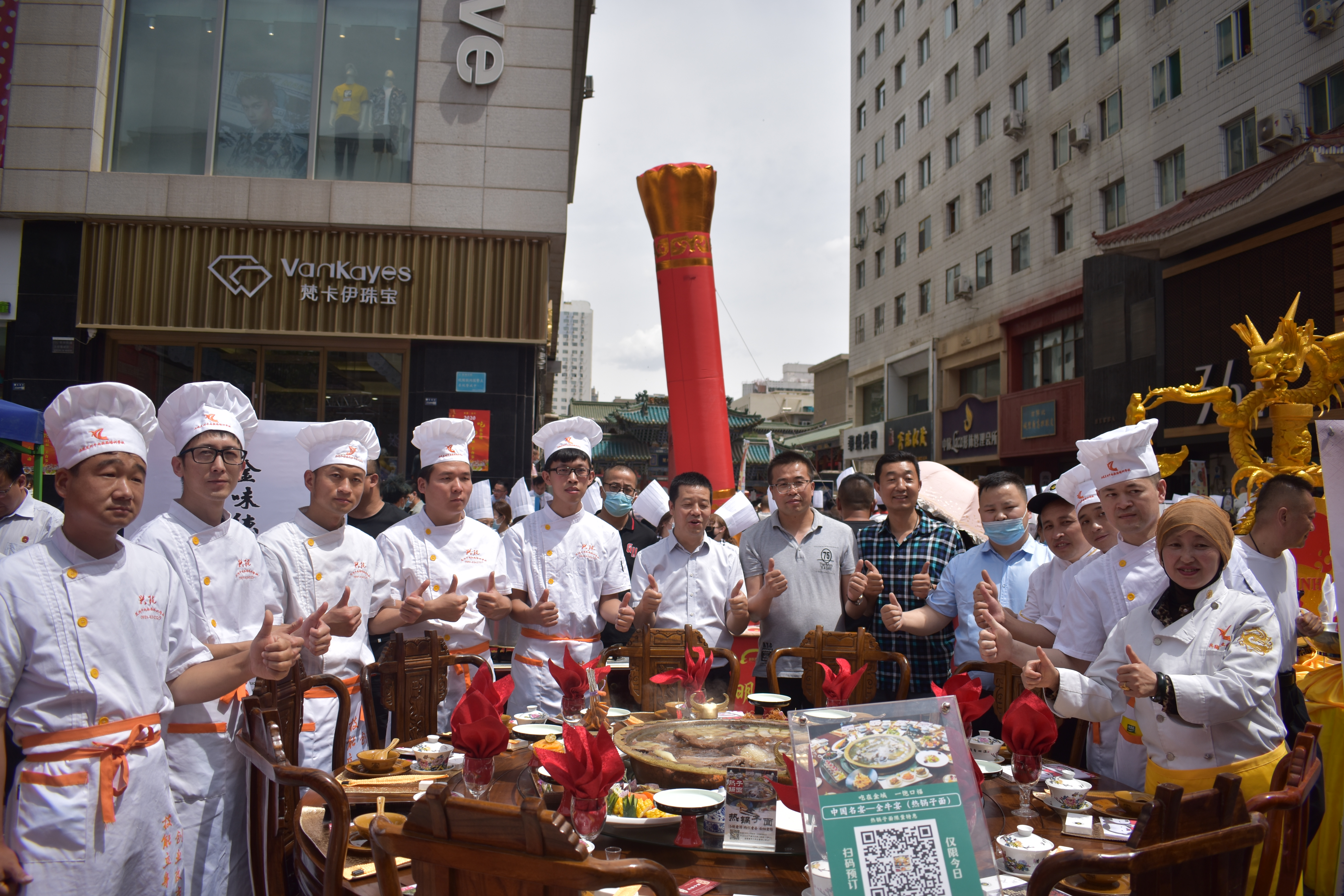現場還展示了蘭州牛肉拉面始祖——"熱鍋子",熱氣騰騰、香味撲鼻,受到現場領導以及消費者高度好評;熱鍋子由中國烹飪大師、中國烹飪藝術家梁順儉首創,在2018年中國烹飪協會(鄭州)面向世界發布的中國省籍名菜名宴中,獲得中國地域特色名宴、以蘭州牛肉拉面為龍頭的小吃宴——全(牦)牛宴。2019年中國敦煌國際文博會上獲得一帶一路特色名宴----牦牛宴。