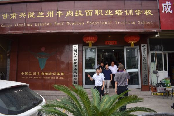 調研組對甘肅興隴蘭州牛肉拉面職業培訓學校、興隴蘭州牛肉拉面國際商學院進行考察。