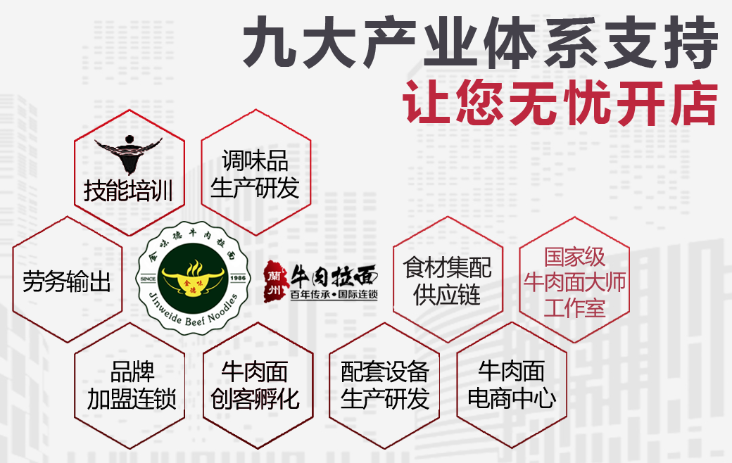 鑫味德蘭州牛肉面使用蘭州牛肉拉面創業孵化園旗下專業調味品生產派送中心——蘭州鑫味德牛肉面調味品生產廠牛肉面專用調料,這是由多位從事蘭州牛肉拉面技術及研究工作的行業專家、學者經過多年的研究,在繼承傳統蘭州牛肉拉面湯料的基礎上,綜合現代快餐經營理念,研制開發出的牛肉面專用調料,攻破了蘭州牛肉拉面發展百年以來一出蘭州就會變味的難題,在全國各地一樣可以做出正宗蘭州牛肉拉面,而且使用方便、質量穩定,不懂牛肉面技術也能輕松創業開店。