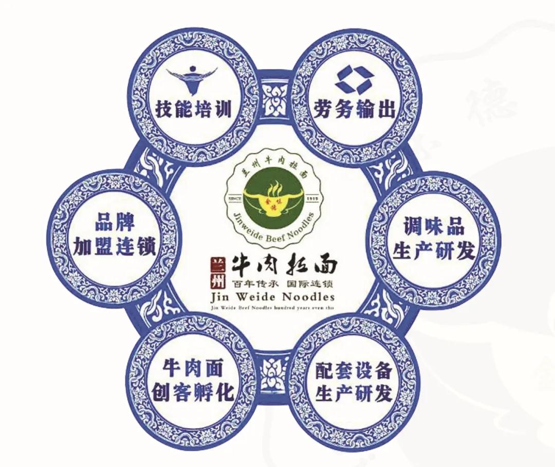集團以蘭州牛肉拉面產業為主,集蘭州牛肉拉面文化傳播、新產品研發、調味品生產、銷售、技術培訓、人才輸出為一體,在世界50多個國家注冊“金味德”牛肉拉面商標。