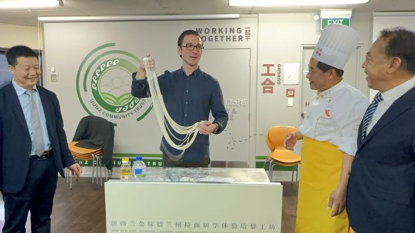 工坊由培黎職業學院、金味德拉面文化產業集團、蘭州資源環境職業技術大學、新西蘭培黎實訓基地等4家單位共同發起建成。在毛利傳統歡迎儀式熱烈氛圍的烘托下,中新兩國代表致辭并共同揭牌,隨后啟動了第一期蘭州牛肉拉面研學體驗。