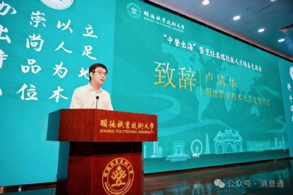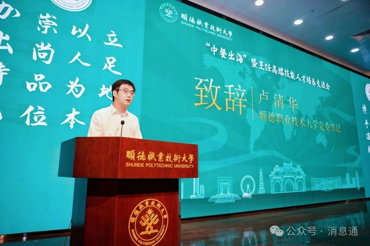 順德職業技術大學黨委書記盧清華致辭介紹,順德職業技術大學烹飪學院是全國唯一掛牌的 “中國烹飪學院”,也是國務院僑辦五個 “中餐出海工程 - 中餐繁榮基地” 之一,學校依托全國數智餐飲行業產教融合共同體、粵菜預制菜產業學院等平臺,聯動行業龍頭企業共建廚電產品應用研究中心,已形成特色鮮明、教產融合的烹飪人才育人體系,為中餐行業持續輸送優質人才。